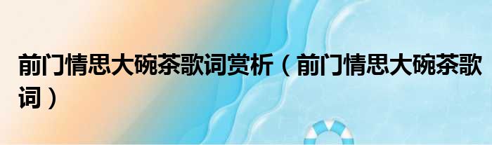 导读 大家好,今天小六子来为大家解答以下的问题,关于前门情思大碗茶歌词赏析,前门情思大碗茶歌词这个很多人还不知道,现在让我们一起来看看吧