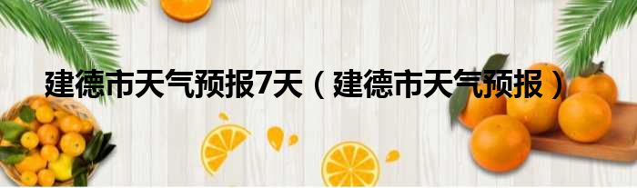 建德市天气预报7天(建德市天气预报)