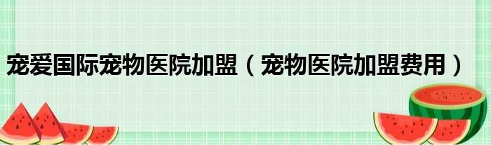 导读 大家好,今天小六子来为大家解答以下的问题,关于宠爱国际宠物医院加盟,宠物医院加盟费用这个很多人还不知道,现在让我们一起来看看吧!1、