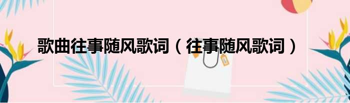 导读 大家好,今天小六子来为大家解答以下的问题,关于歌曲往事随风歌词,往事随风歌词这个很多人还不知道,现在让我们一起来看看吧!1、往事随风
