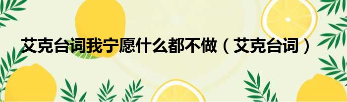 大家好,今天小六子来为大家解答以下的问题,关于艾克台词我宁愿什么都不做,艾克台词这个很多人还不知道,现在让我们一起来看看吧!