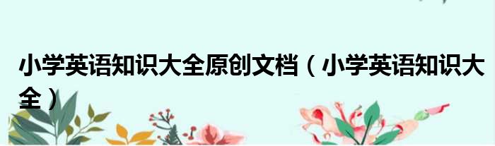 大家好,今天小六子来为大家解答以下的问题,关于小学英语知识大全原创文档,小学英语知识大全这个很多人还不知道,现在让我们一起来看看吧!