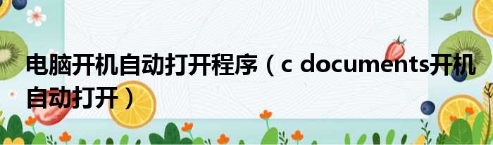 导读 大家好,今天小六子来为大家解答以下的问题,关于电脑开机自动打开程序,c documents开机自动打开这个很多人还不知道,现在让我们一起来看