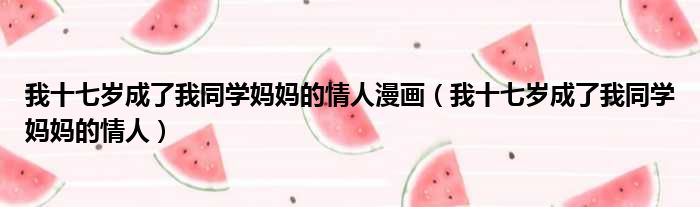我十七岁成了我同学妈妈的情人漫画(我十七岁成了我同学妈妈的情人)