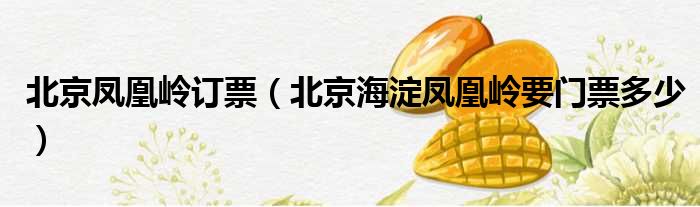 北京凤凰岭订票(北京海淀凤凰岭要门票多少)