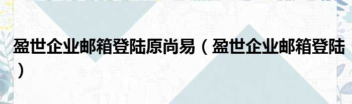 盈世企业邮箱登陆原尚易(盈世企业邮箱登陆)