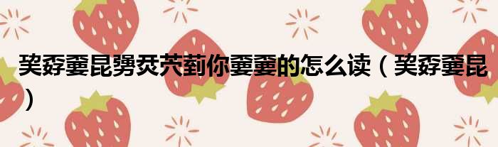 巭孬嫑昆勥烎茓菿你嫑嫑的怎么读(巭孬嫑昆)