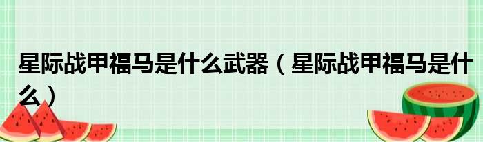 星际战甲福马是什么武器(星际战甲福马是什么)