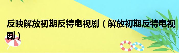 反映解放初期反特电视剧(解放初期反特电视剧)