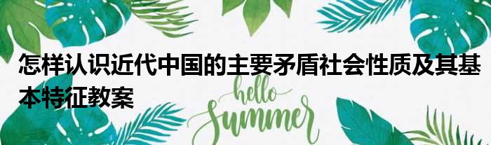 导读 大家好,今天小六子来为大家解答以下的问题,关于怎样认识近代中国的主要矛盾社会性质及其基本特征教案这个很多人还不知道,现在让我们一起