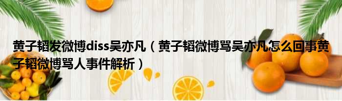 黄子韬发微博diss吴亦凡(黄子韬微博骂吴亦凡怎么回事黄子韬微博骂人事件解析)