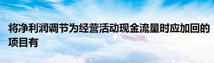 导读 大家好,今天小六子来为大家解答以下的问题,关于将净利润调节为经营活动现金流量时应加回的项目有这个很多人还不知道,现在让我们一起来看