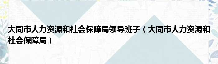 大同市人力资源和社会保障局领导班子(大同市人力资源和社会保障局)