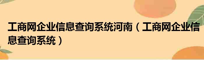 工商网企业信息查询系统河南(工商网企业信息查询系统)