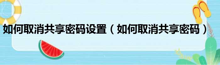 导读 大家好,今天小六子来为大家解答以下的问题,关于如何取消共享密码设置,如何取消共享密码这个很多人还不知道,现在让我们一起来看看吧!1、