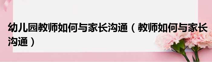 幼儿园教师如何与家长沟通(教师如何与家长沟通)