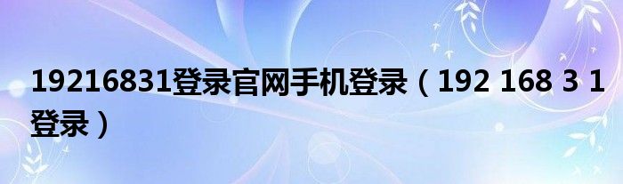 导读 大家好,今天小六子来为大家解答以下的问题,关于19216831登录官网手机登录,192 168 3 1登录这个很多人还不知道,现在让我们一起来看看
