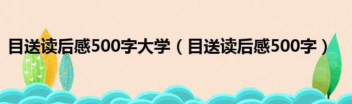 导读 大家好,今天小六子来为大家解答以下的问题,关于目送读后感500字大学,目送读后感500字这个很多人还不知道,现在让我们一起来看看吧!1、读
