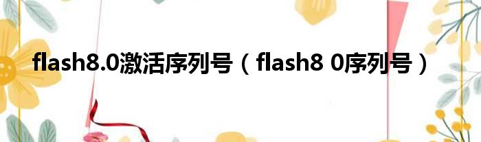 大家好,今天小六子来为大家解答以下的问题,关于flash8.0激活序列号,flash8 0序列号这个很多人还不知道,现在让我们一起来看看吧!