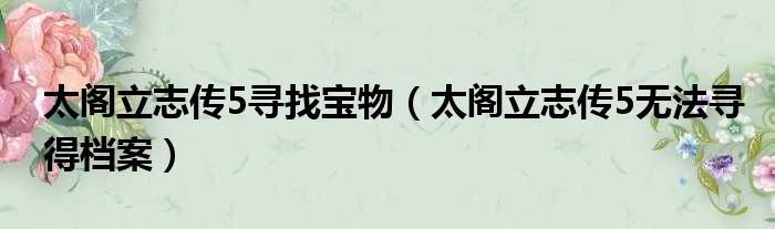 太阁立志传5寻找宝物(太阁立志传5无法寻得档案)