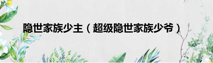 大家好,今天小六子来为大家解答以下的问题,关于隐世家族少主,超级隐世家族少爷这个很多人还不知道,现在让我们一起来看看吧!