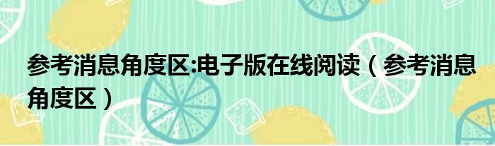 参考消息角度区:电子版在线阅读(参考消息角度区)