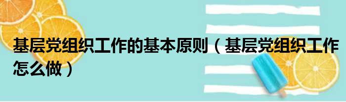 基层党组织工作的基本原则(基层党组织工作怎么做)