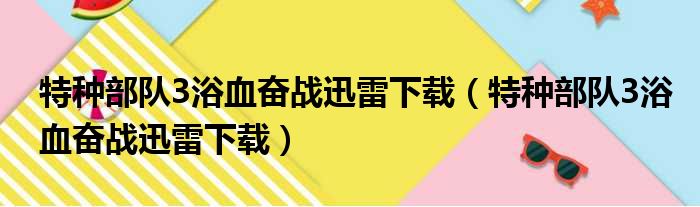 特种部队3浴血奋战迅雷下载(特种部队3浴血奋战迅雷下载)
