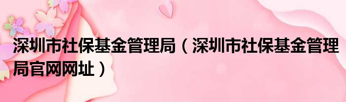 深圳市社保基金管理局(深圳市社保基金管理局官网网址)
