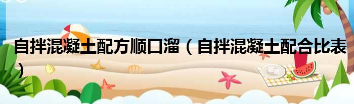 导读 大家好,今天小六子来为大家解答以下的问题,关于自拌混凝土配方顺口溜,自拌混凝土配合比表这个很多人还不知道,现在让我们一起来看看吧!1