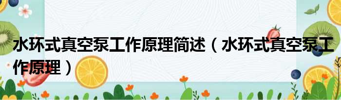 水环式真空泵工作原理简述(水环式真空泵工作原理)