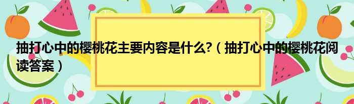 导读 大家好,今天小六子来为大家解答以下的问题,关于抽打心中的樱桃花主要内容是什么?,抽打心中的樱桃花阅读答案这个很多人还不知道,现在让我
