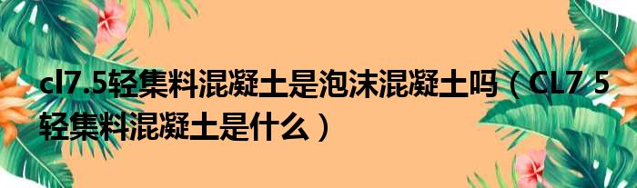 cl7.5轻集料混凝土是泡沫混凝土吗(CL7 5轻集料混凝土是什么)