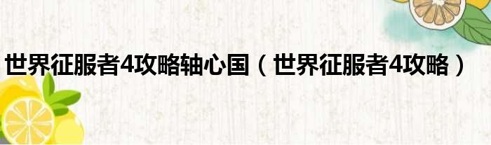 世界征服者4攻略轴心国(世界征服者4攻略)