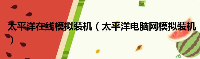 太平洋在线模拟装机(太平洋电脑网模拟装机)