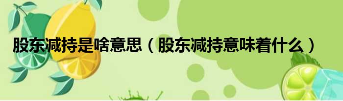 大家好,今天小六子来为大家解答以下的问题,关于股东减持是啥意思,股东减持意味着什么这个很多人还不知道,现在让我们一起来看看吧!
