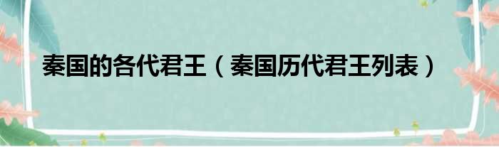 大家好,今天小六子来为大家解答以下的问题,关于秦国的各代君王,秦国历代君王列表这个很多人还不知道,现在让我们一起来看看吧!