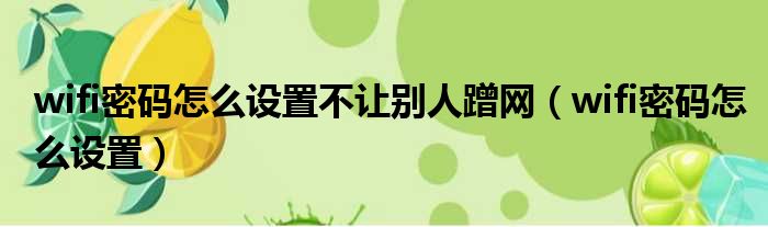 wifi密码怎么设置不让别人蹭网(wifi密码怎么设置)