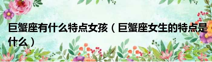 巨蟹座有什么特点女孩(巨蟹座女生的特点是什么)