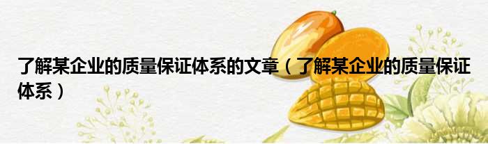了解某企业的质量保证体系的文章(了解某企业的质量保证体系)