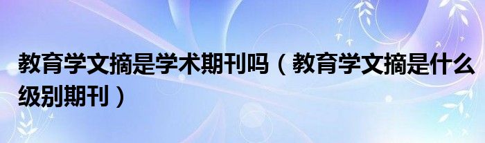 教育学文摘是学术期刊吗(教育学文摘是什么级别期刊)