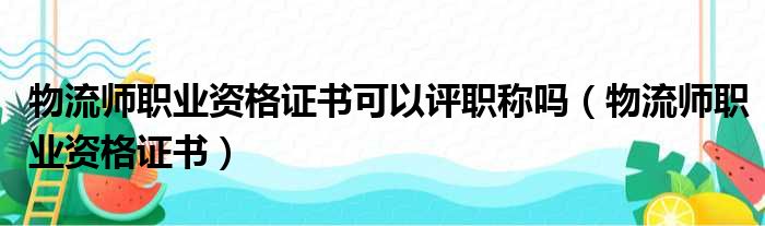物流师职业资格证书可以评职称吗(物流师职业资格证书)