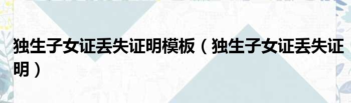 独生子女证丢失证明模板(独生子女证丢失证明)