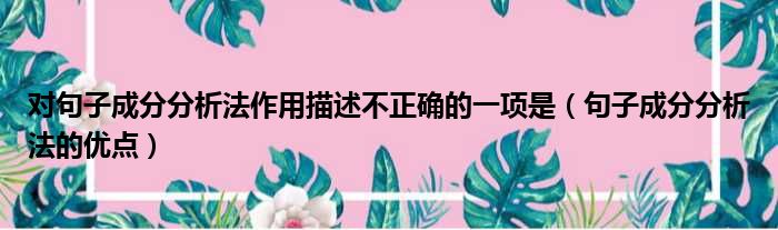 导读 大家好,今天小六子来为大家解答以下的问题,关于对句子成分分析法作用描述不正确的一项是,句子成分分析法的优点这个很多人还不知道,现在