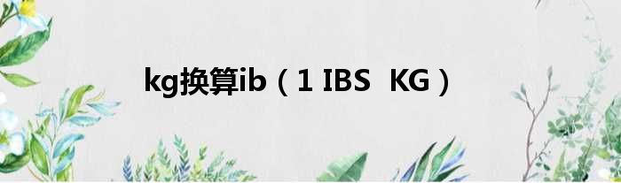 导读 大家好,今天小六子来为大家解答以下的问题,关于kg换算ib,1 IBS KG这个很多人还不知道,现在让我们一起来看看吧!1、ibs是磅1KG约等于
