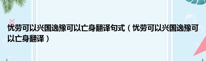 忧劳可以兴国逸豫可以亡身翻译句式(忧劳可以兴国逸豫可以亡身翻译)
