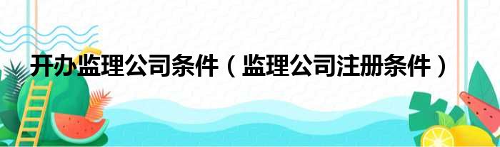 导读 大家好,今天小六子来为大家解答以下的问题,关于开办监理公司条件,监理公司注册条件这个很多人还不知道,现在让我们一起来看看吧!1、1 单