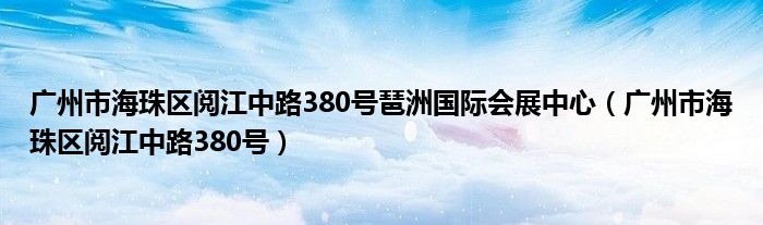 广州市海珠区阅江中路380号琶洲国际会展中心(广州市海珠区阅江中路380号)