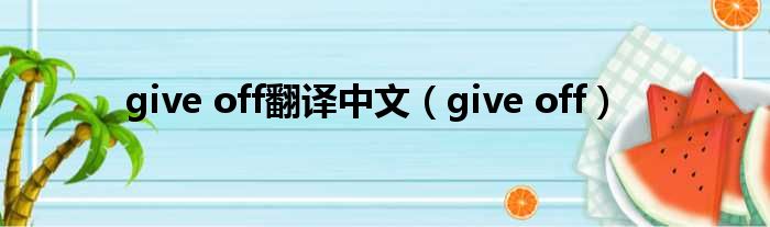 导读 大家好,今天小六子来为大家解答以下的问题,关于give off翻译中文,give off这个很多人还不知道,现在让我们一起来看看吧!1、发出(光