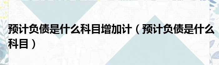 导读 大家好,今天小六子来为大家解答以下的问题,关于预计负债是什么科目增加计,预计负债是什么科目这个很多人还不知道,现在让我们一起来看看